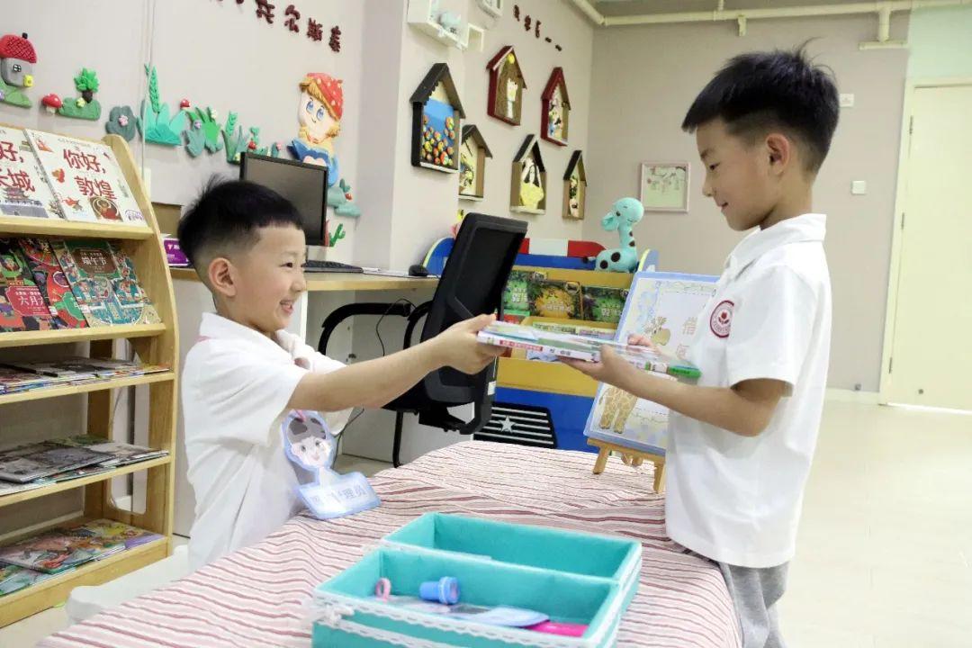 一张小小的书签,在方寸指尖,倾注了孩子们的热爱;“图书医院”里,“小医生”们利用透明胶带、胶水,在细心的修修补补中,“受伤”的图书又变得完好如新。