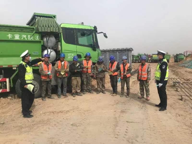 为进一步加强渣土运输车辆管理,有效提高渣土车司机安全运输意识,确保交通安全源头风险隐患得到有效管控,提高渣土车驾驶员的文明行车意识,4月12日,榆林交警绕城大队四中队民警深入辖区施工现场,开展渣土车驾驶员交通安全宣讲活动。