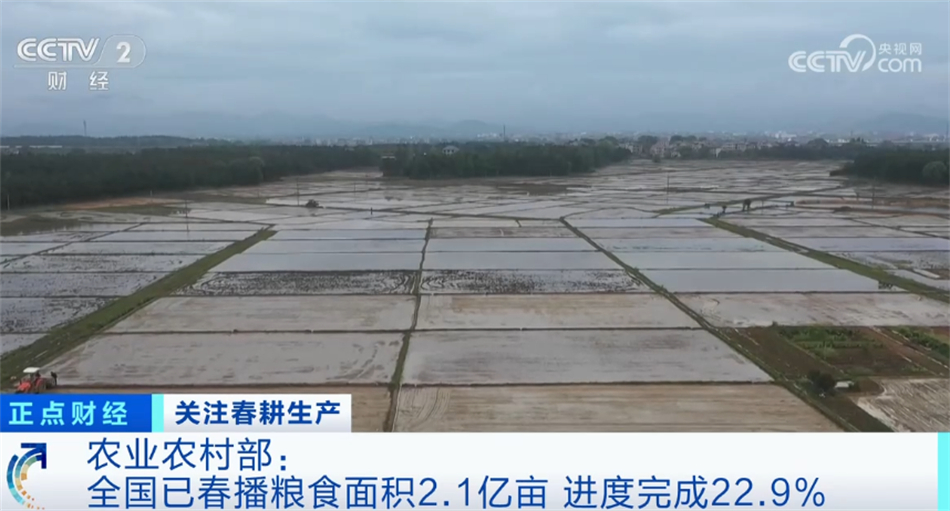 央视网消息:农业农村部最新发布数据显示,目前,全国已春播粮食2.1亿亩,进度同比略快。
