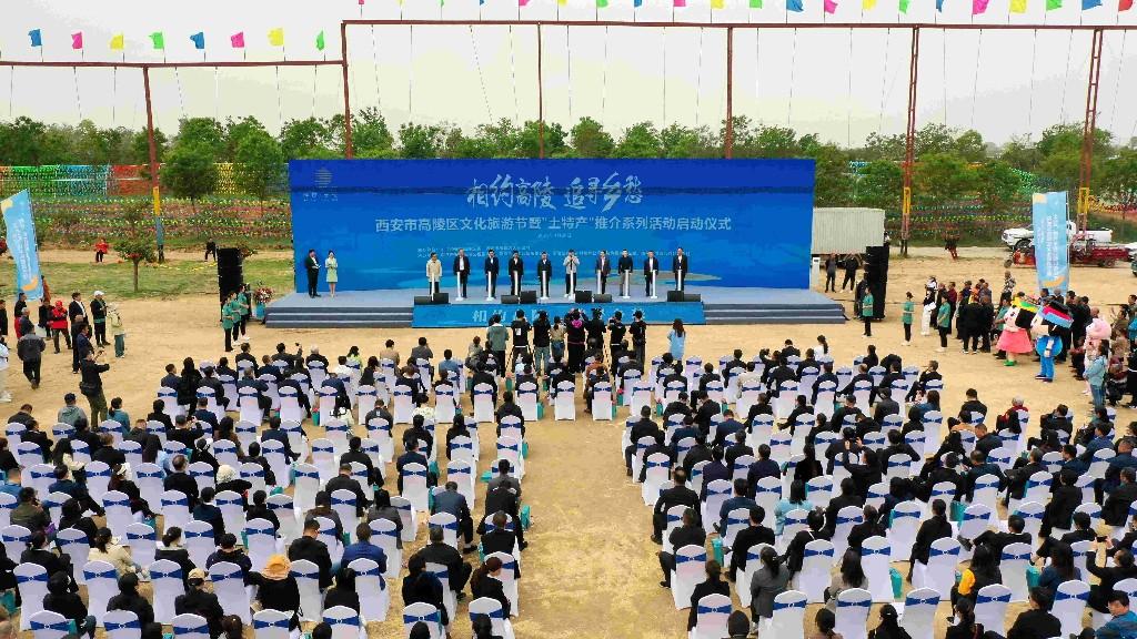 三秦都市报-三秦网讯(郭静 韩乐 记者 张艳芳)在西北人民革命大学旧址探访红色文化,在汉阳陵邑等文物古迹体会千年古邑的辉煌历史,在高陵场畔体验农耕文化缓释绵绵乡愁……4月28日,以“相约高陵 追寻乡愁”为主题的高陵区文化旅游节暨土特产推介系列活动在高陵场畔农耕文化产业观光园开幕,现场旅游资源推介、特色美食展销品尝、民间文艺活动展演、旅游景点参观游览、时令果蔬亲子采摘等精彩活动应接不暇。