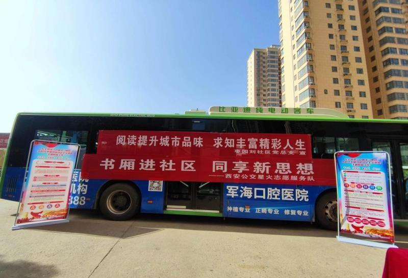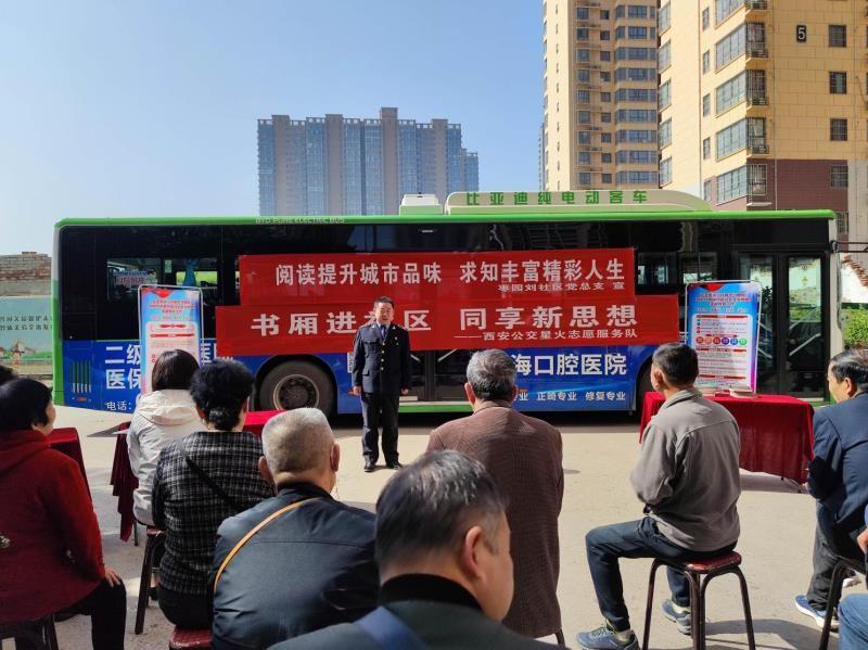 三秦都市报-三秦网讯(记者 陶颖)4月23日是第28个世界读书日,4月23日至5月22日是第十七届“西安读书月”。4月26日上午,西安公交星火志愿服务队将一辆公交车打造成“书厢”,开进枣园刘新区,与灞桥区纺织城街道枣园刘社区党支部一起,为居民带去一场别开生面的主题教育宣讲暨好书分享活动,让全民读书月真正惠及全民。