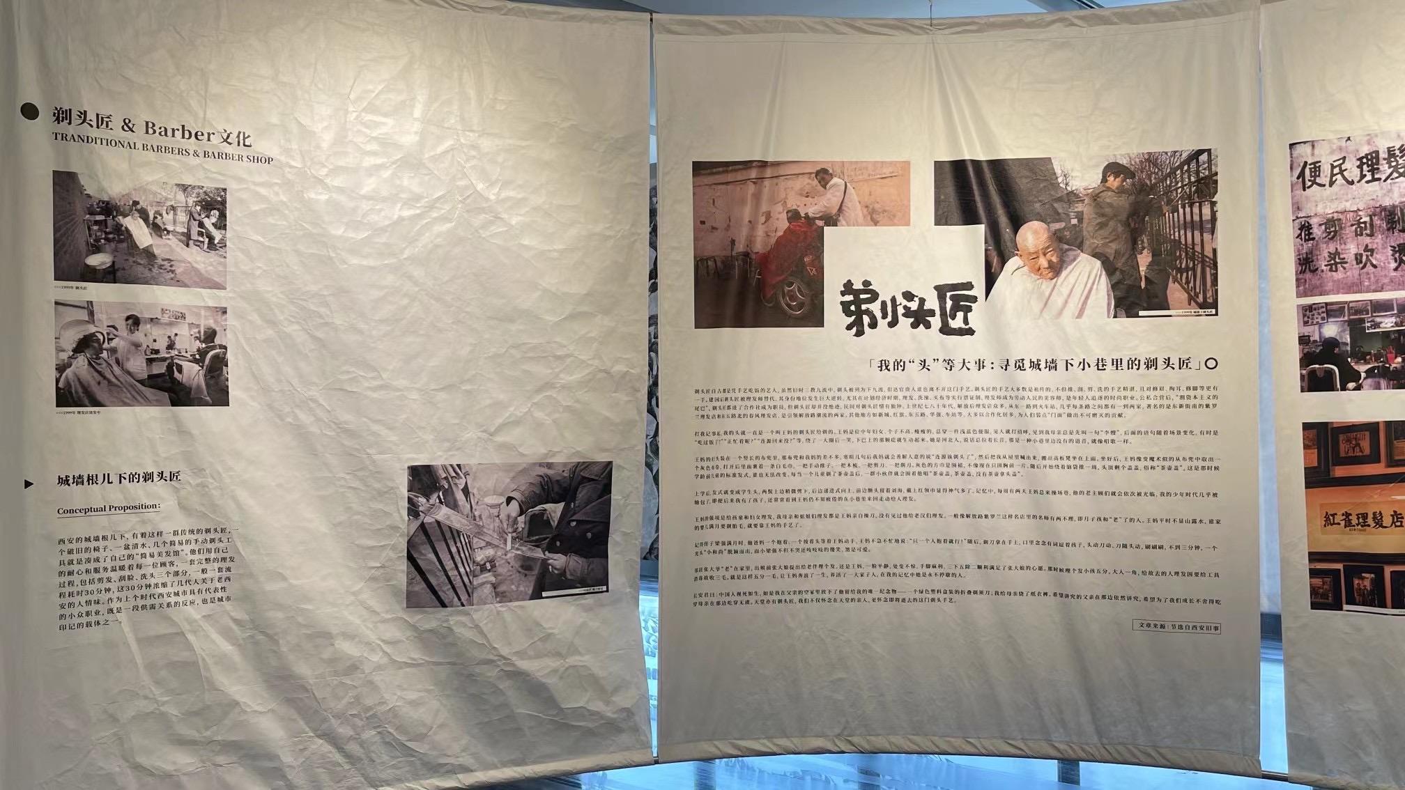 这样生动的画面多年后被李杰拍到了,不过,画面中的主人公换了人。如今,这张照片就在展览现场。“这位理发的师傅是上海人,叫王洪庆,如果还健在应该已经90多岁高龄。”李杰说,他走访全国各地拍摄了不少理发照片,但是在城墙根下理发的——西安独有。