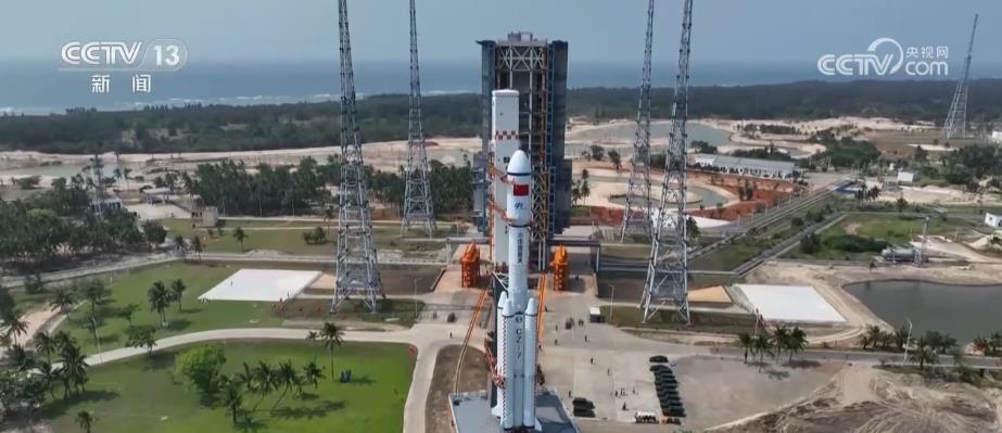 5月7日早上8时许,伴随着指令声,天舟六号货运飞船和长征七号遥七运载火箭组合体在海南文昌航天发射场开始进行垂直转运。在活动发射平台的托举下,长征七号遥七运载火箭驶出了总装测试厂房。