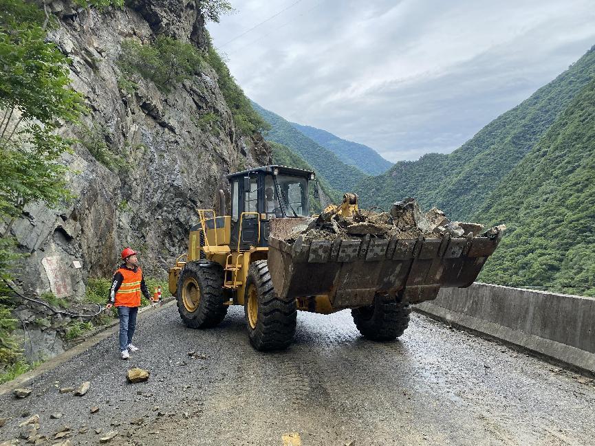 西安市公路局周至公路段迅速组织人员第一时间赶赴现场开展道路抢通工作。抢险人员及时在塌方点设置警示标志,同时投入装载机、养护车辆,立即开展塌方清理工作。经过两个多小时的紧张清理,6月5日上午11时,塌方全部清理完毕,道路恢复正常通行。