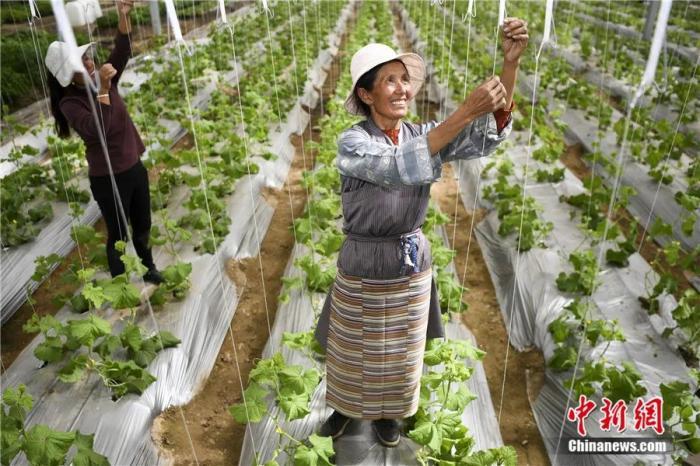 西藏山南扎囊县绿之源智慧农业项目的工人正在劳作。杨华峰 摄