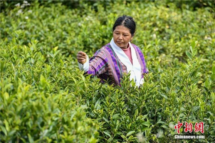墨脱县德兴乡易贡白村门巴族妇女采摘茶叶。贡嘎来松 摄