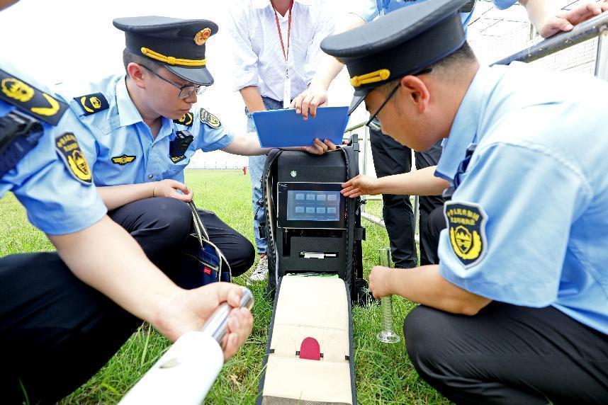 除油烟外,食品厂中污水处理也是生态环境部门主要监管的环节之一,为此,西安市生态环境局执法支队经开大队执法人员张明文、兰天航、张与唐,一起对厂区排污口水质进行了现场检测。