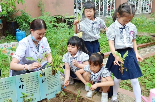 药剂科调剂师蔡敏霞老师带领孩子们种植了中药“薄荷、益母草、夏枯草、艾草、半枝莲”,让孩子们在动手中认识中药材,并学习中药的相关知识。