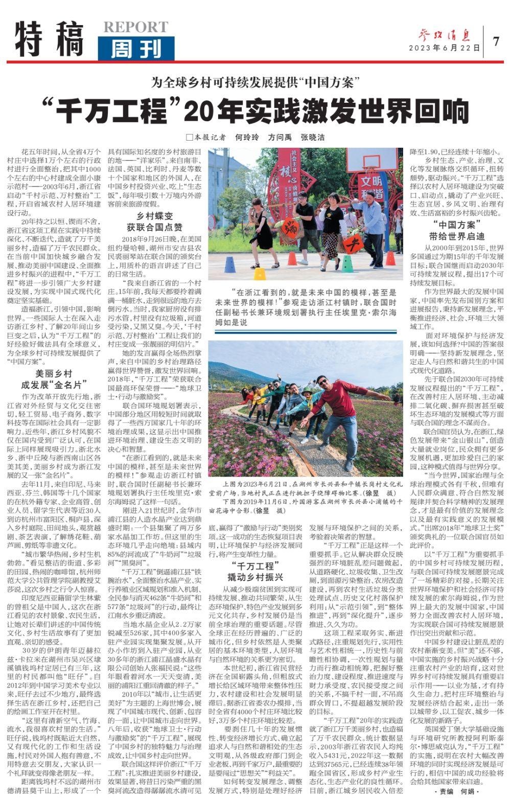造福浙江,引领中国,影响世界。一些国际人士在深入走访浙江乡村、了解20年间山乡巨变之后,认为“千万工程”的好经验好做法具有全球意义,为全球乡村可持续发展提供了“中国方案”。