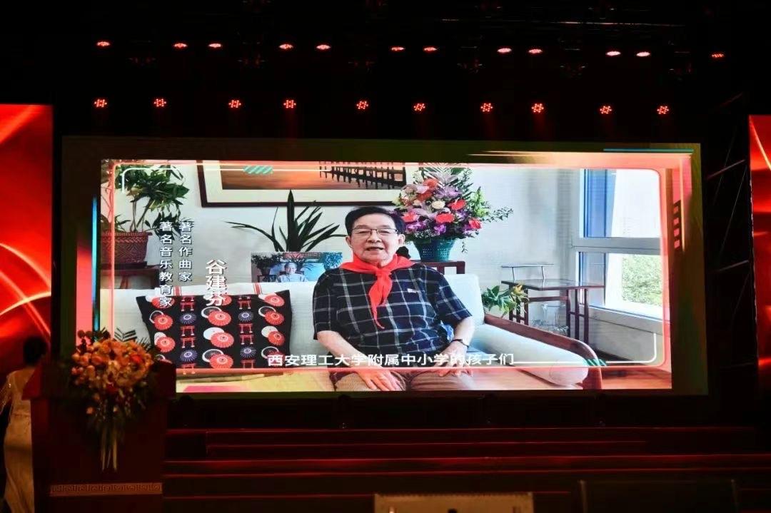 下午四时许,发布会掀起高潮,八十八岁高龄的谷建芬老师通过视频深情寄语西安理工大学附属中小学的孩子们,并宣布《强国有我》歌曲发布。谷建芬老师强调,这首歌,不仅是写给西安理工大学附属中小学的,也是写给西安市青少年,写给这个时代的歌。