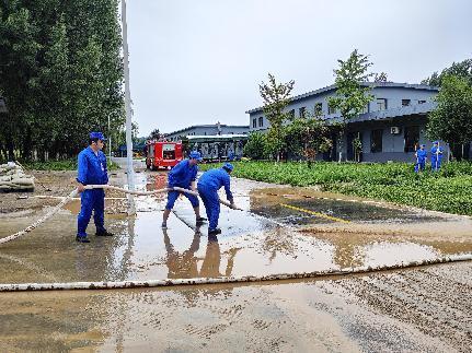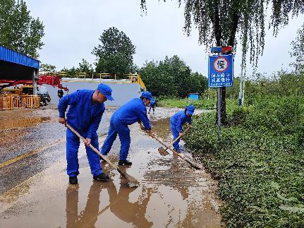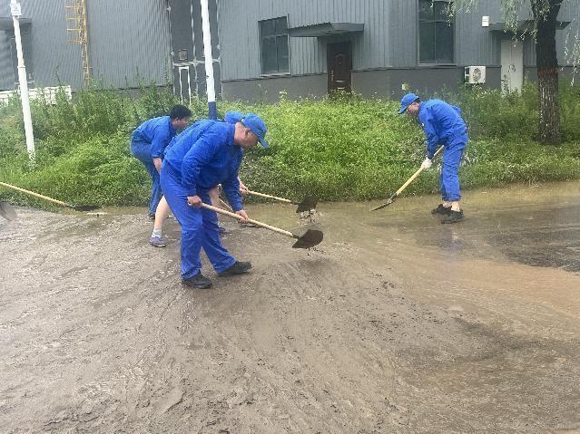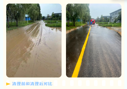 综合保障部了解到这一情况,立即将消防车派到淤堵路段,利用喷水枪协助清理道路淤泥。经过一早上的共同努力,各工房和淤堵路段全部清理干净,保障了科研生产的正常运行。