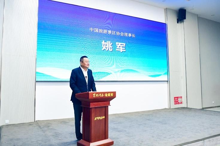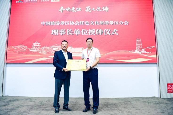会上,姚军与白四座携手为分会揭牌,标志着中国旅游景区协会红色文化旅游景区分会正式成立。