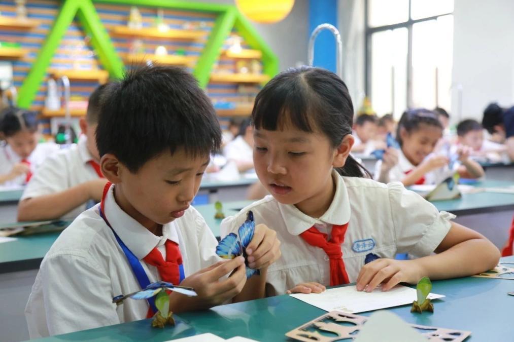 两场讲座期间,学生们状态全神贯注,身临其境,耳听心受。科普老师随后为学生详细讲授了蝴蝶的相关知识,为了让大家进一步了解蝴蝶构造,激发他们对昆虫和自然的兴趣,学生积极参与到手工拼接光明女神蝶活动中。