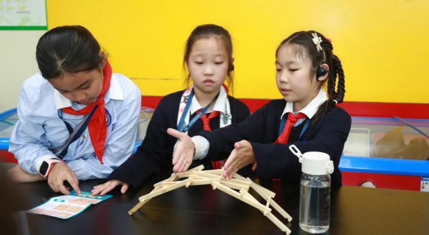 在中国农业历史博物馆,学生们了解了中国农业历史发展的基本脉络与辉煌成就,还近距离观看了大量中国传统农具,见证了古代劳动人民的智慧。接着,大家来到于右任教育思想纪念馆,通过观看珍贵影像和文献资料,认真聆听讲解员讲解。随后,大家还现场体验了倍力桥搭建和榫卯拼接,直观感受了中华技艺之美,古人匠心之智。