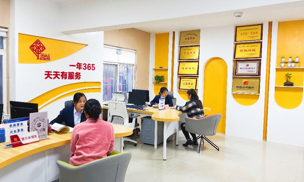 该社区便民服务站坚持“365”工作理念,实行线上+线下服务双模式。线下制作了社区居民服务指南,实现44项政务服务事项一站通办,方便居民少跑路、快办理;线上借助居民微信群宣传大厅业务办理流程、政策更新、业务咨询等“亲民化”便捷服务。同时,社区还创设预约服务、应急服务、延时服务、跟踪服务等,以“计生事务、社保事务、民政事务”三类常办事项为切入点,为居民提供方便快捷的优质服务。