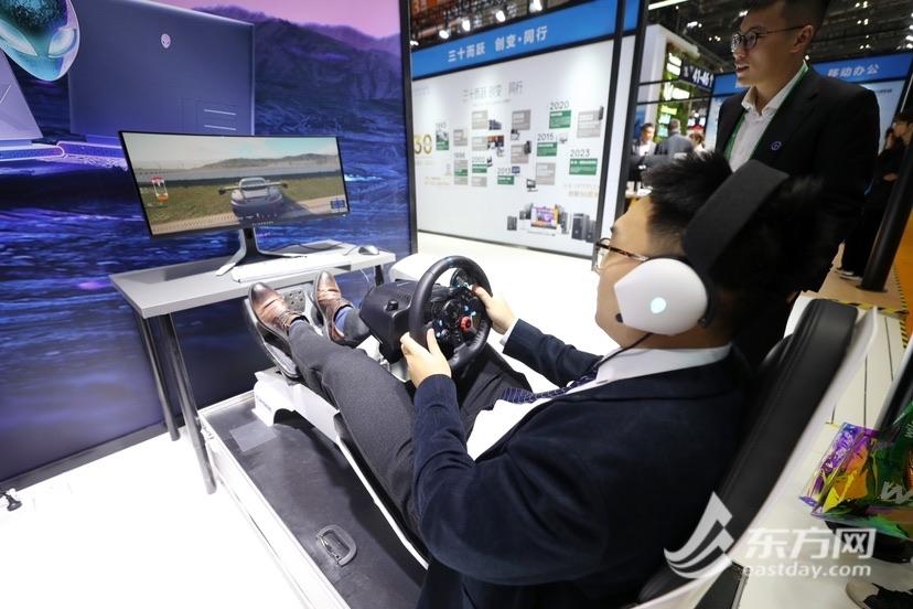 观众在戴尔展台互动体验。本届进博会,戴尔带来了集AI、5G、边云协同架构、先进的基础设施产品于一体的车联网服务测试平台,全方位展示了包括特定车辆识别和预警、行人行为分析和预警,以及右转辅助驾驶在内的车联网安全用例,助力提高道路安全性能和交通效率,加速智能交通落地。