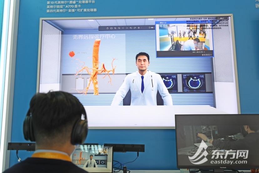 “无界”虚拟元诊室项目由复旦大学附属中山医院与英特尔联合联影医疗及其他技术合作方于今年共同启动。该项目利用计算机视觉和人工智能技术,通过对真人表情、肢体动作和眼神进行追踪,重塑的数字医生能够远程实时执行真实医生的指令。医生能远程使用医疗检测设备获取患者的各项生理指标,患者则通过3D显示屏观察医生,从而达到医患双方直观、流畅、实时交互的多视角视频交流体验。