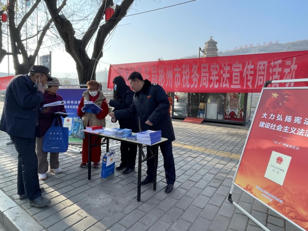 三秦都市报-三秦网讯(王小嫚记者黄艳)日前,国家税务总局彬州市税务局组织开展“12·4”国家宪法日暨“宪法宣传周”活动,加强宪法学习宣传,强化宪法意识,弘扬宪法精神。并结合税收工作实际,将宪法宣传与税费优惠政策宣传有机结合,深入群众开展“面对面”现场普法,“零距离”答疑解惑。