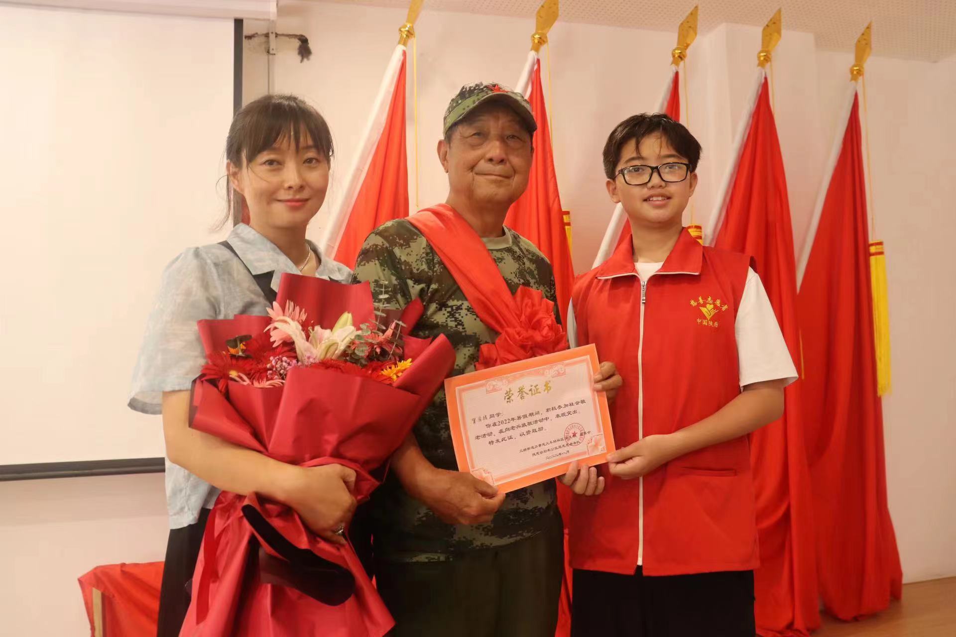 谈起加入志愿者队,白依桐告诉记者,从2014年开始,她就带着上幼儿园的儿子贺宥程一起参加公益活动,以实际行动感染教育孩子,让孩子早早就养成尊老敬老的好习惯。如今就读于西安高新逸翠园中学的贺宥程已经15岁了,初中生的他虽然学习很紧张,也会在有限的时间里坚持和妈妈一起做公益。