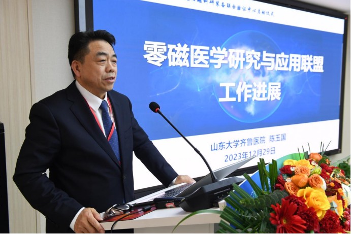 陈玉国院长对零磁医学研究与应用联盟建设进展工作进行汇报,他详细介绍了联盟成立的背景,同时展示了联盟在推动零磁医学发展方面所取得的成就。他表示,将继续开展多中心临床试验,推动零磁医学技术在医学实践中的应用。