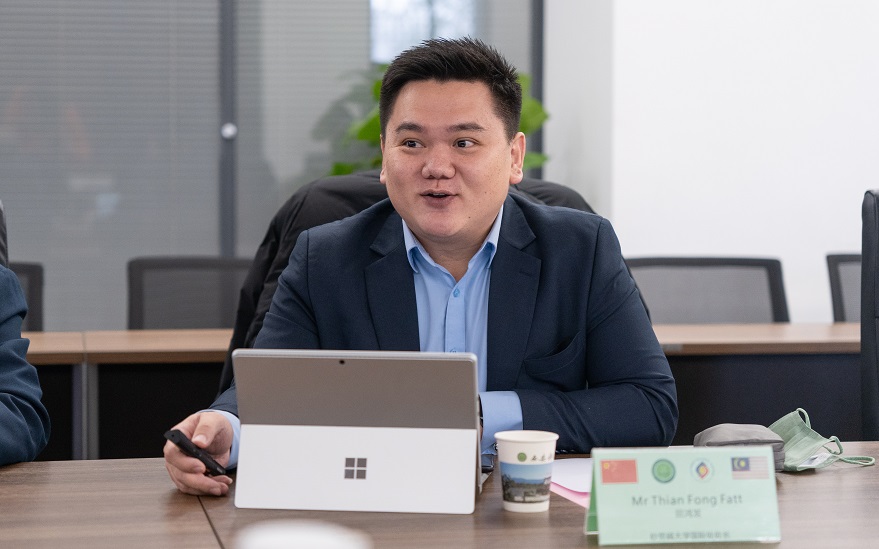 马来西亚砂劳越大学国际处处长Mr Thian Fong Fatt(田鸿发)首先对学院的热情接待表示感谢,并从院校面积、校区分布到本硕博项目,以及现有办学规模、在校人数和人才培养模式等方面对砂劳越大学进行了介绍。马来西亚砂劳越大学吉隆坡学习中心主席Dato Dr Wong(拿督黄社豪博士)表示砂劳越大学和学院相关专业的人才培养具有很高的合作性,他基于双方的合作需求,提出共同建立“学习中心”等具体的合作构想。