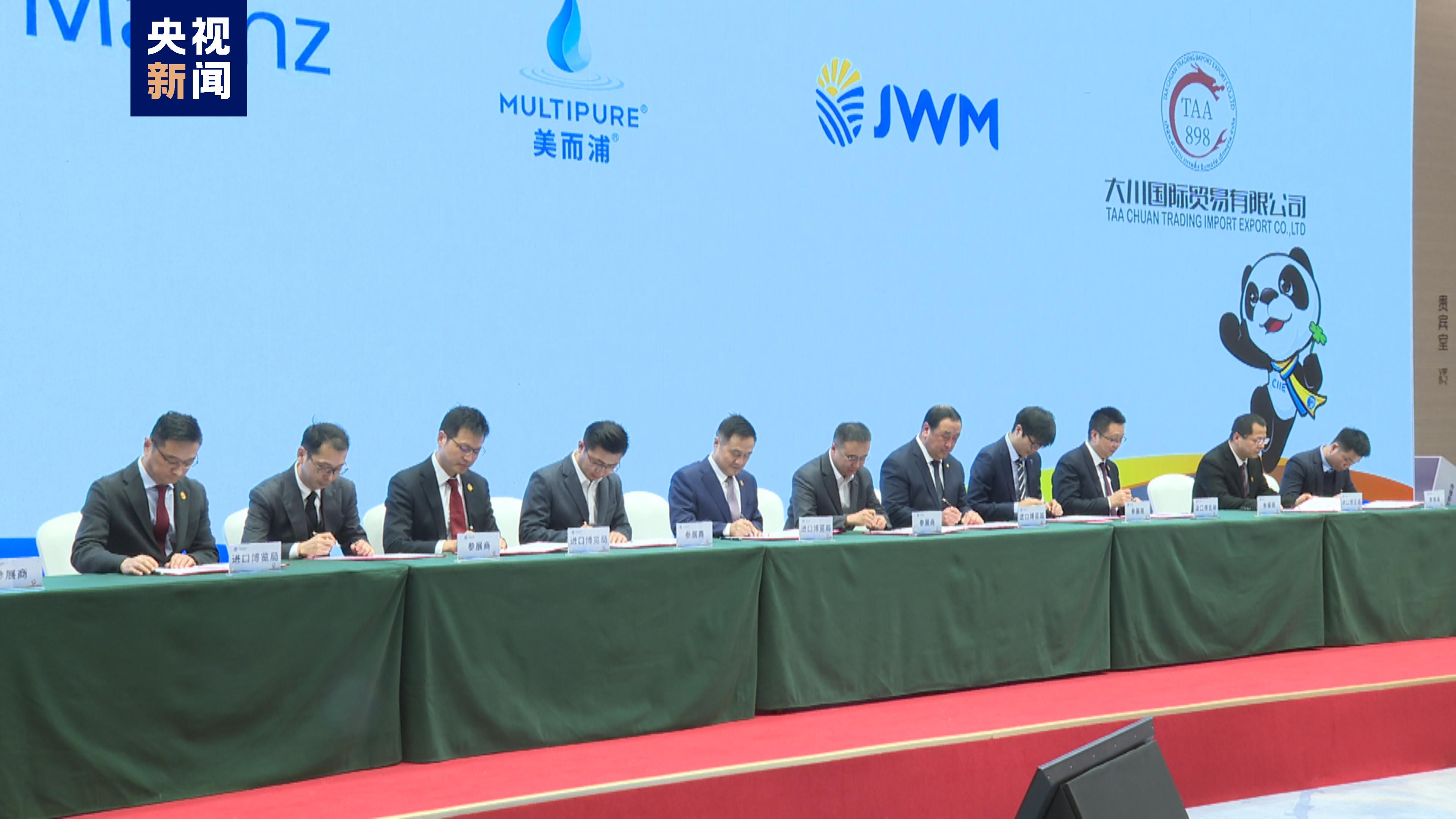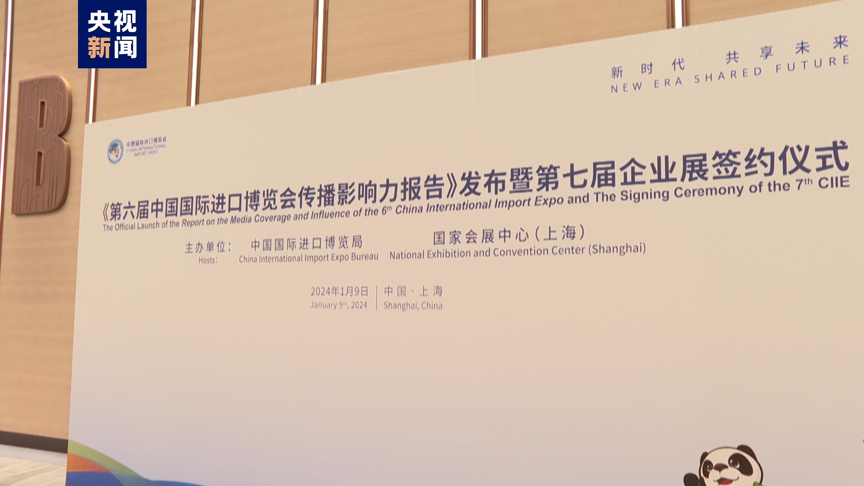 1月9日,《第六届中国国际进口博览会传播影响力报告》发布暨第七届企业展签约仪式在国家会展中心(上海)举行。活动现场,23家展商集体签约参加第七届进博会。