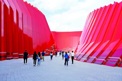 贵州大力推进“红飘带”项目,用“艺术+科技”讲述长征故事,传承红色基因。图为观众准备进入“红飘带”数字体验馆。新华社发