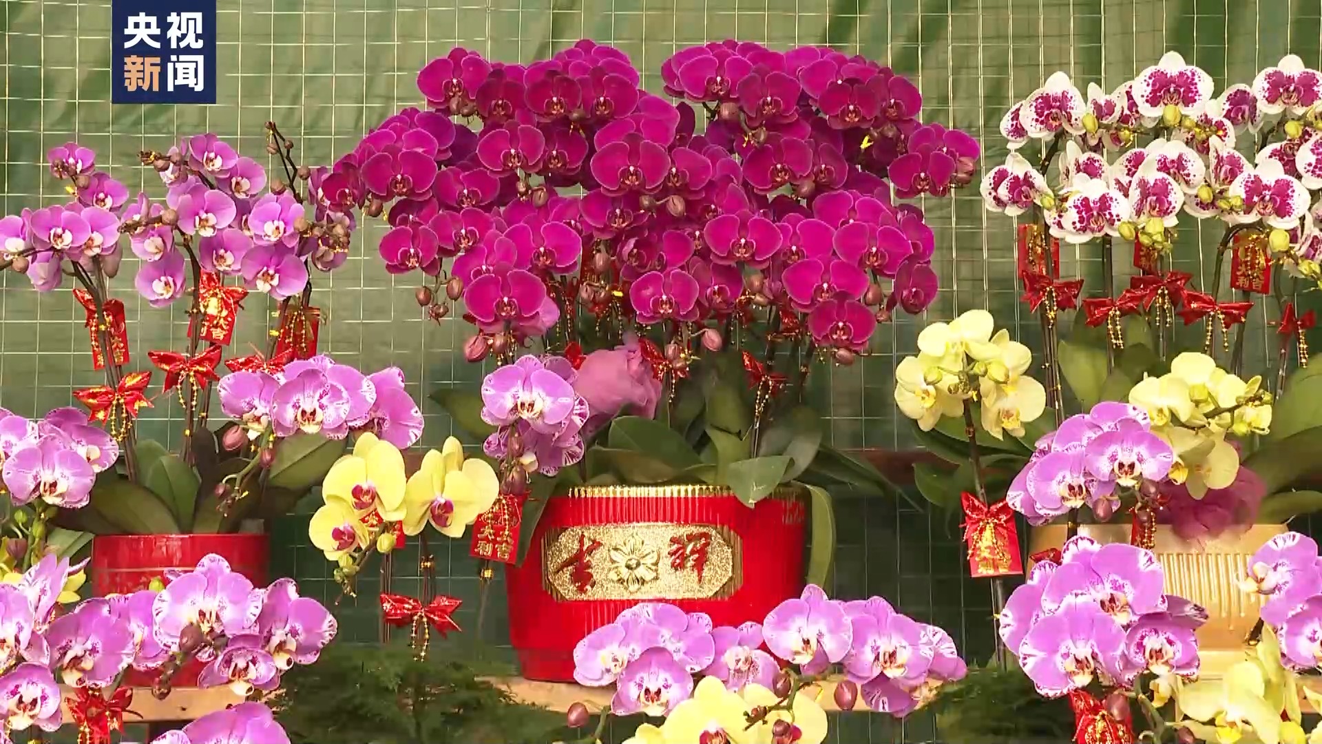 五颜六色的蝴蝶兰、象征大吉大利的金桔、寓意五代同堂的黄金果等花卉成为装扮家居、增添节日气氛的首选。