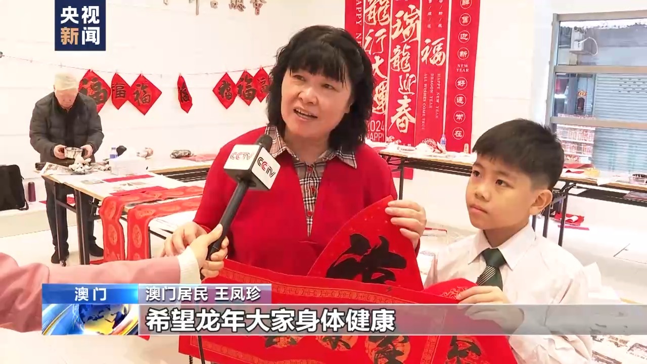 澳门居民 王凤珍:今天带孙子来感受过年的气氛,了解写春联的传统文化。希望龙年大家身体健康。