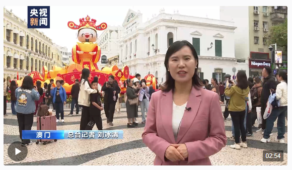 总台记者 刘冰清:我身后这个憨态可掬的财神,在人来人往的议事厅前地格外引人注意。在澳门,春节期间不仅有迎财神的习俗,而且亲朋好友见面也少不了一句恭喜发财。