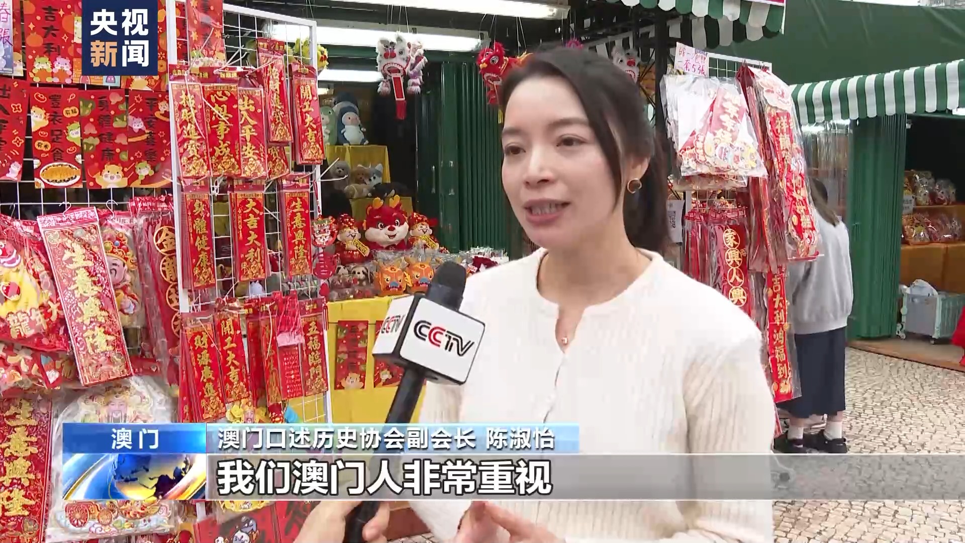 澳门口述历史协会副会长 陈淑怡:我们澳门人非常重视春节这个传统节日,我们每年都会逛年宵市场,买风车、买春联,还有买花。希望新的一年可以有好开头,事事如意。