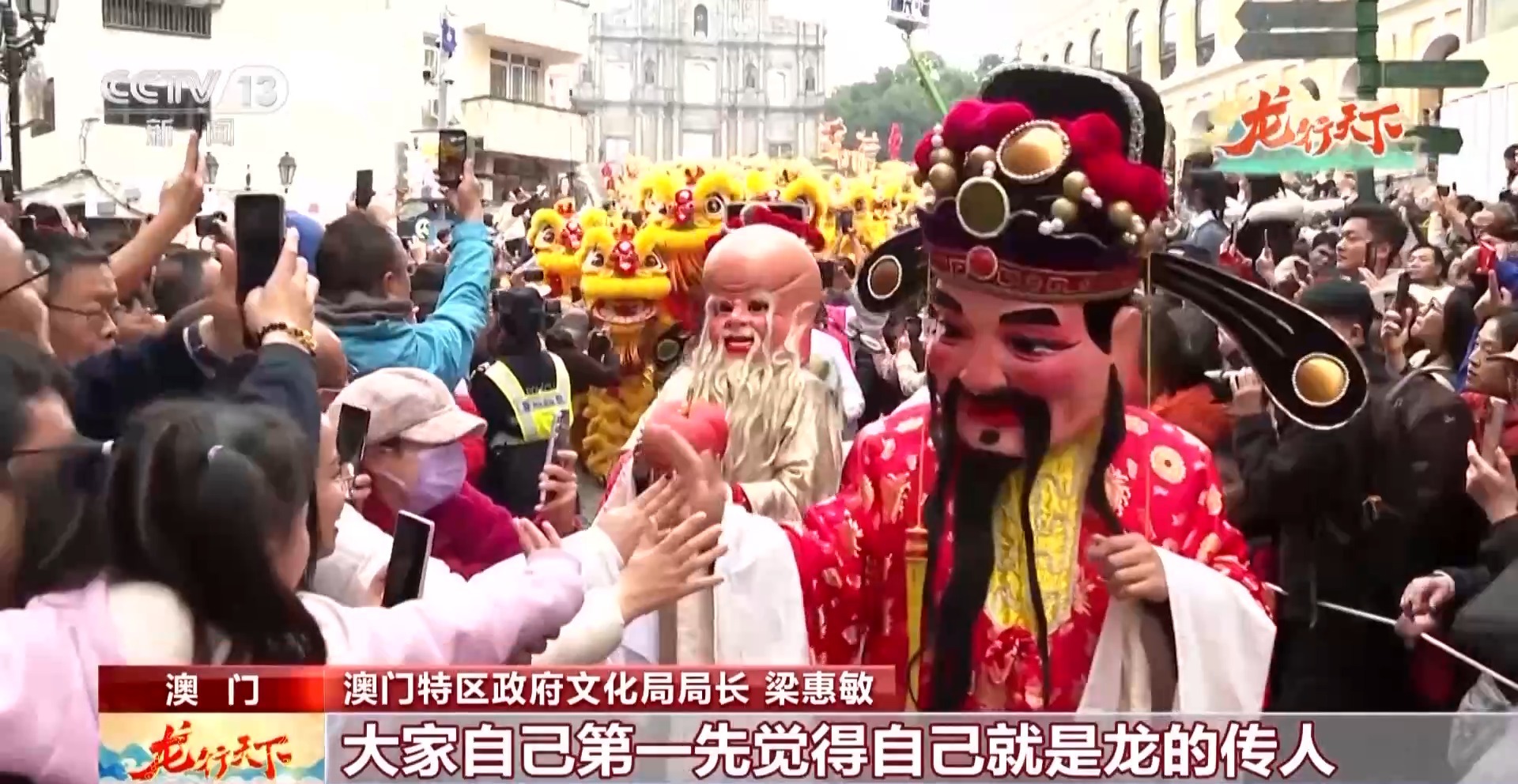 澳门特区政府文化局局长 梁惠敏:澳门人大家第一会觉得自己是龙的传人,我们舞龙舞狮一直以来都是带给大家兴旺、快乐、庆祝、高兴的寓意,所以我们过年过节,大的节日澳门都会舞龙舞狮。另外龙和澳门的渊源很深的,澳门在很多文化遗产里体验到龙的象征。