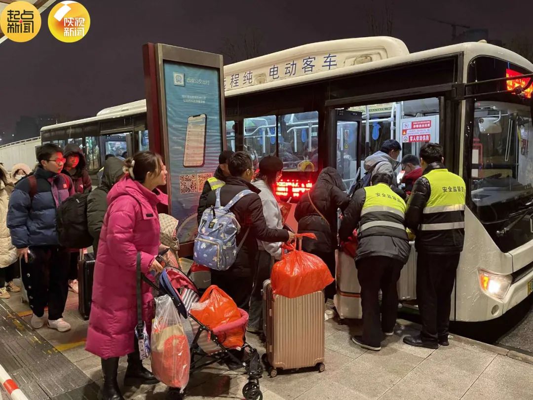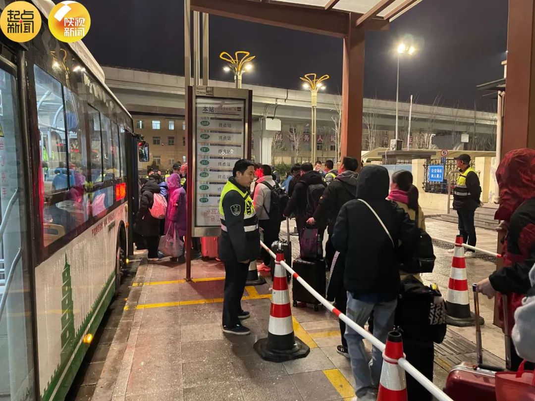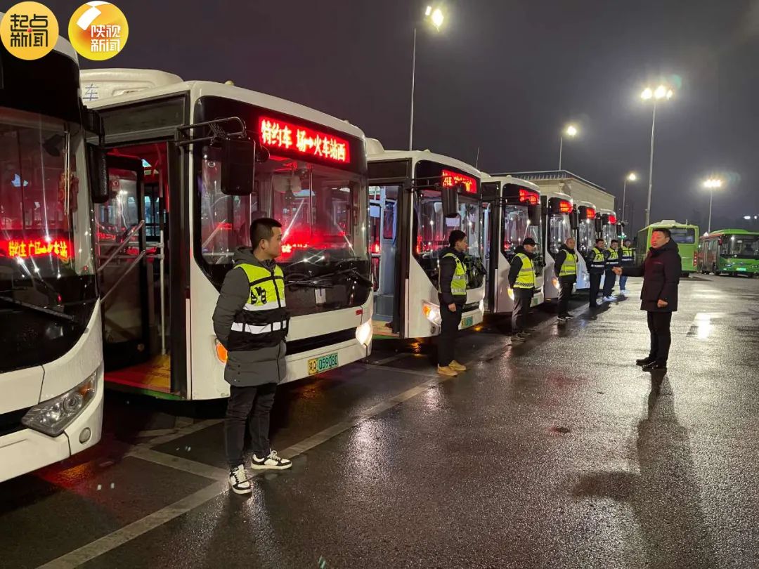 西安公交集团第六分公司第一时间启动高铁晚点客流疏散应急预案和特殊天气应急响应,增加应急保障运力和服务保障人员,全力以赴疏散客流,保证旅客的顺利出行。