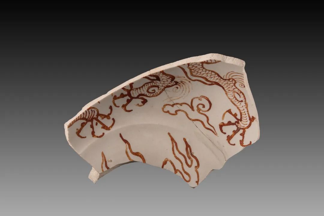 明代细白瓷矾红彩云龙纹碗 (藩王府用瓷)