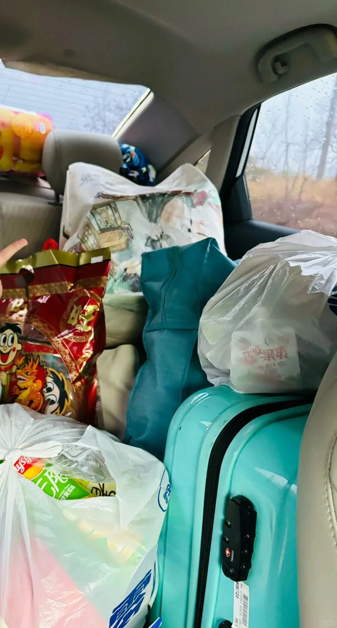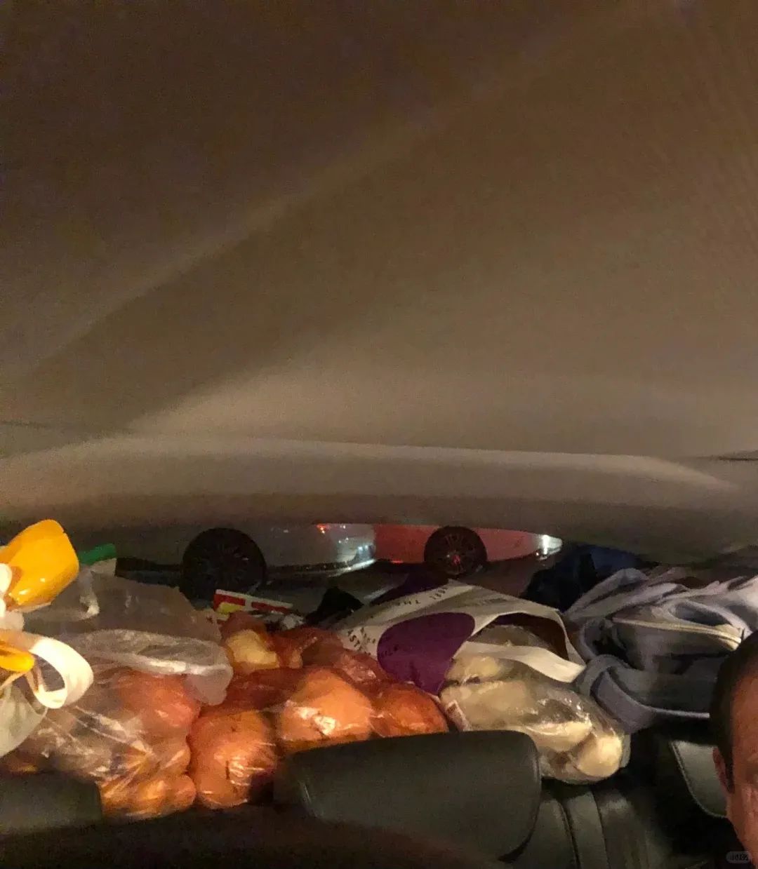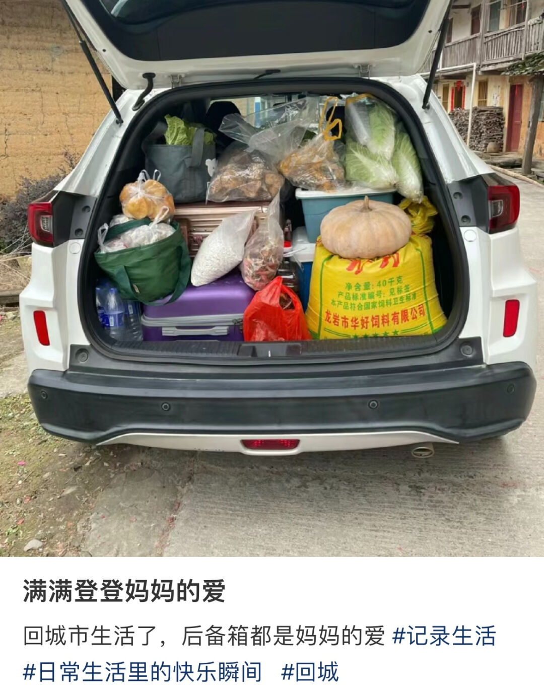 不仅把鸡鸭鱼和蔬菜塞满后备箱