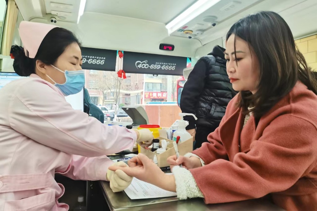 3月4日一大早,咸阳市中心血站献血车驶入永寿移动公司,参与无偿献血和志愿服务的志愿者陆续赶到献血车有序排队献爱心,在医务人员的指导下,大家认真配合血站医务人员填写献血登记表、测温、体检、初筛。
