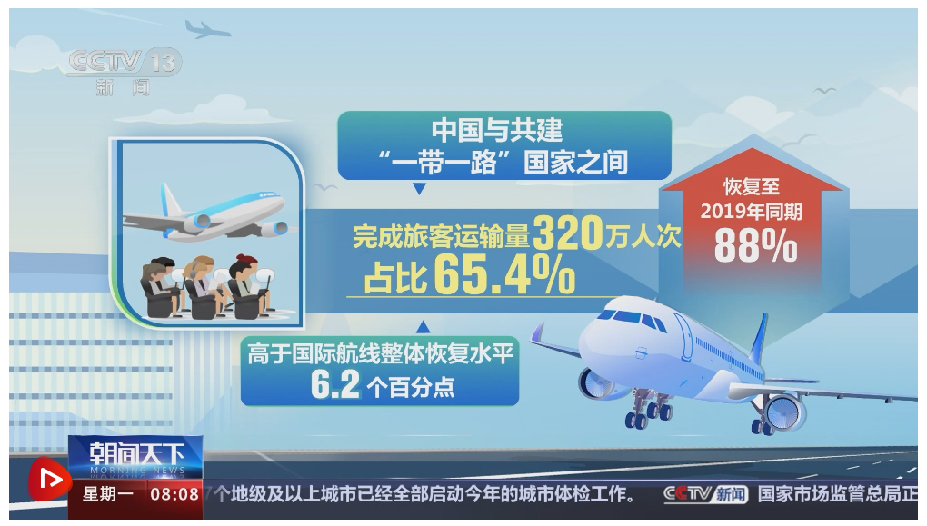 中国民航局数据显示,2月,我国航空公司在中国至东盟航线客运量最大,完成194万人次,占比接近四成;中国至欧洲航线客运量为69.2万人次,恢复程度最高;中国与共建“一带一路”国家之间完成旅客运输量320万人次,占比65.4%,恢复至2019年同期的88%,高于国际航线整体恢复水平6.2个百分点。