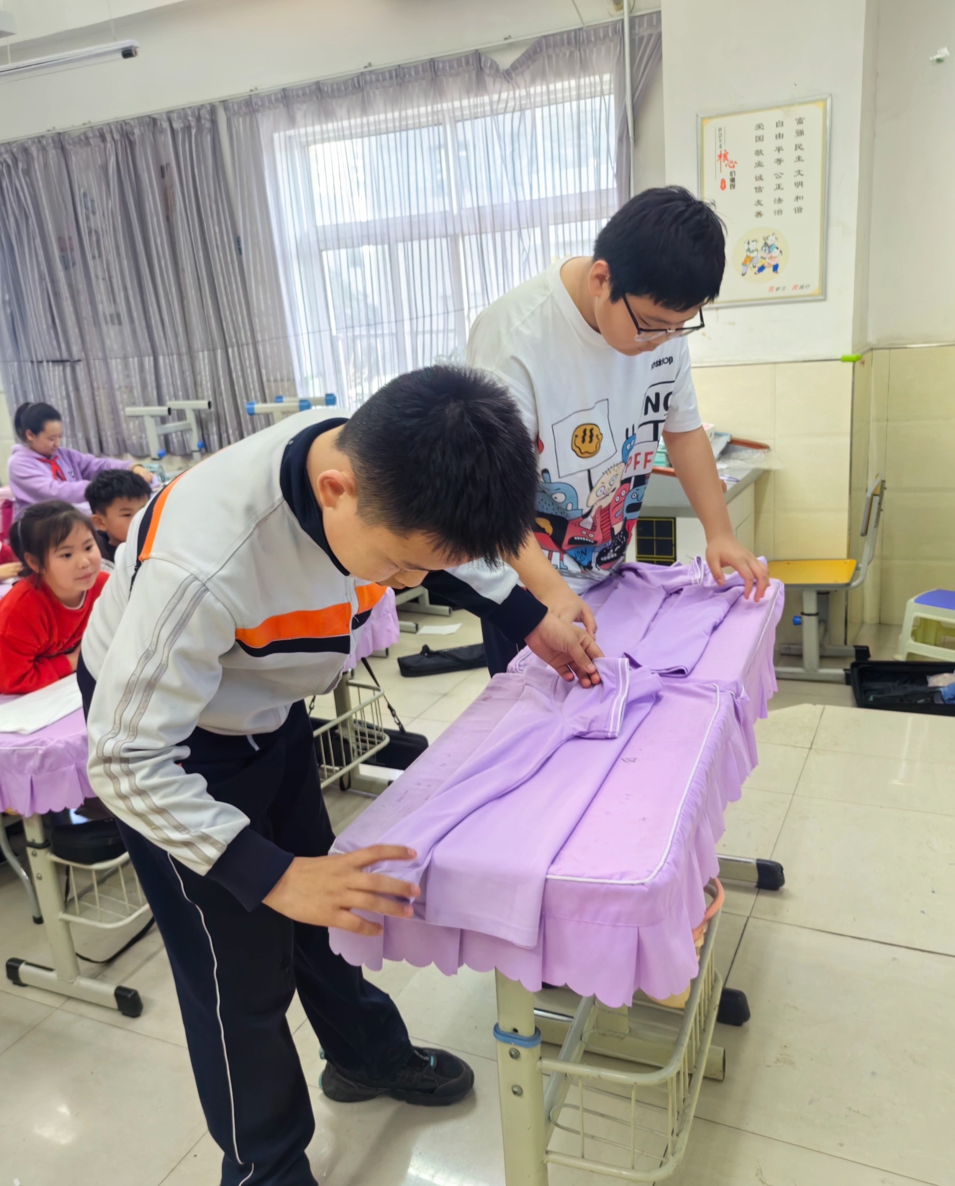 本次课后服务课的主题是衣柜整理,惠纳整理主理人、高级职业整理收纳师、儿童整理教育师郭昱菁老师耐心地给整理小达人班的同学们教授了衣柜收纳整理的方法和技巧,并通过游戏互动让孩子们学会衣柜整理,告诉孩子们整理衣柜也可以自己完成。课堂上,无论是衣柜分类游戏,还是教大家又快又好地折叠T恤,孩子们都表现出了浓厚的兴趣,积极参与。老师教的认真,孩子们学的认真,寓教于乐,寓学于趣,化教于心。