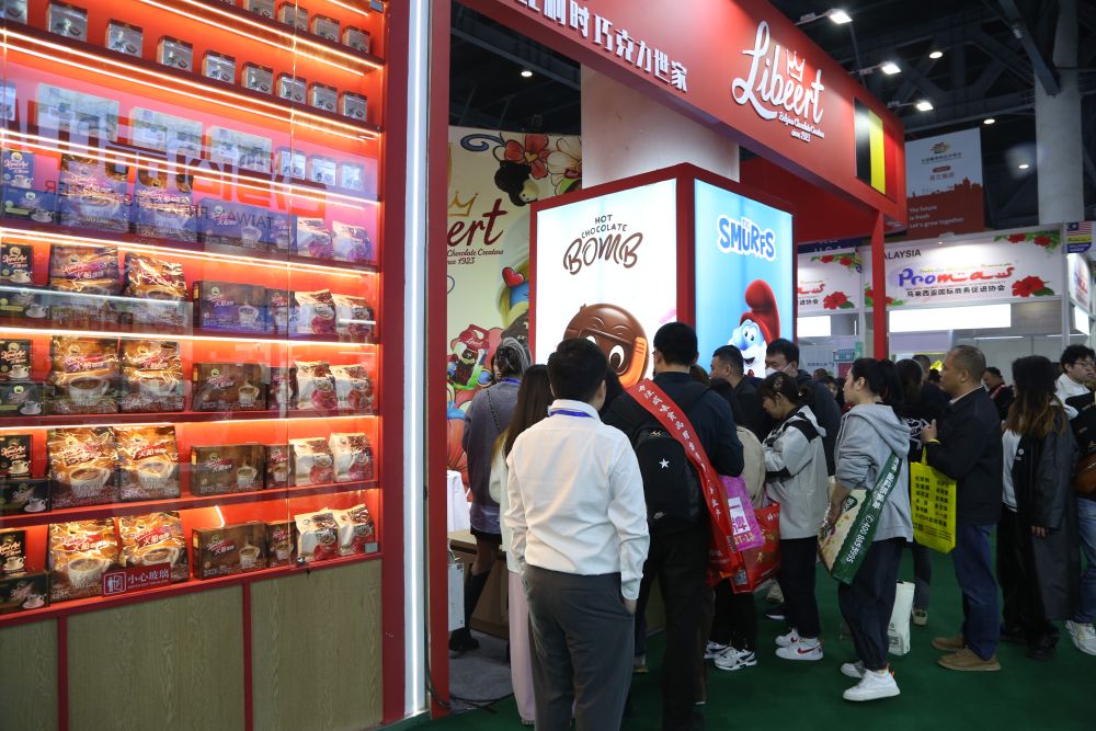 在10号馆进口食品展区,比利时国家(商品)馆邀请了一家比利时巧克力厂设立展位。“这里的人真的非常多。比利时是以巧克力、啤酒、钻石和蓝精灵闻名的国家,而我们是唯一能使用蓝精灵IP的巧克力厂家,所以大家对我们的产品非常感兴趣。”这家比利时巧克力厂的负责人莉莉·利比特表示。