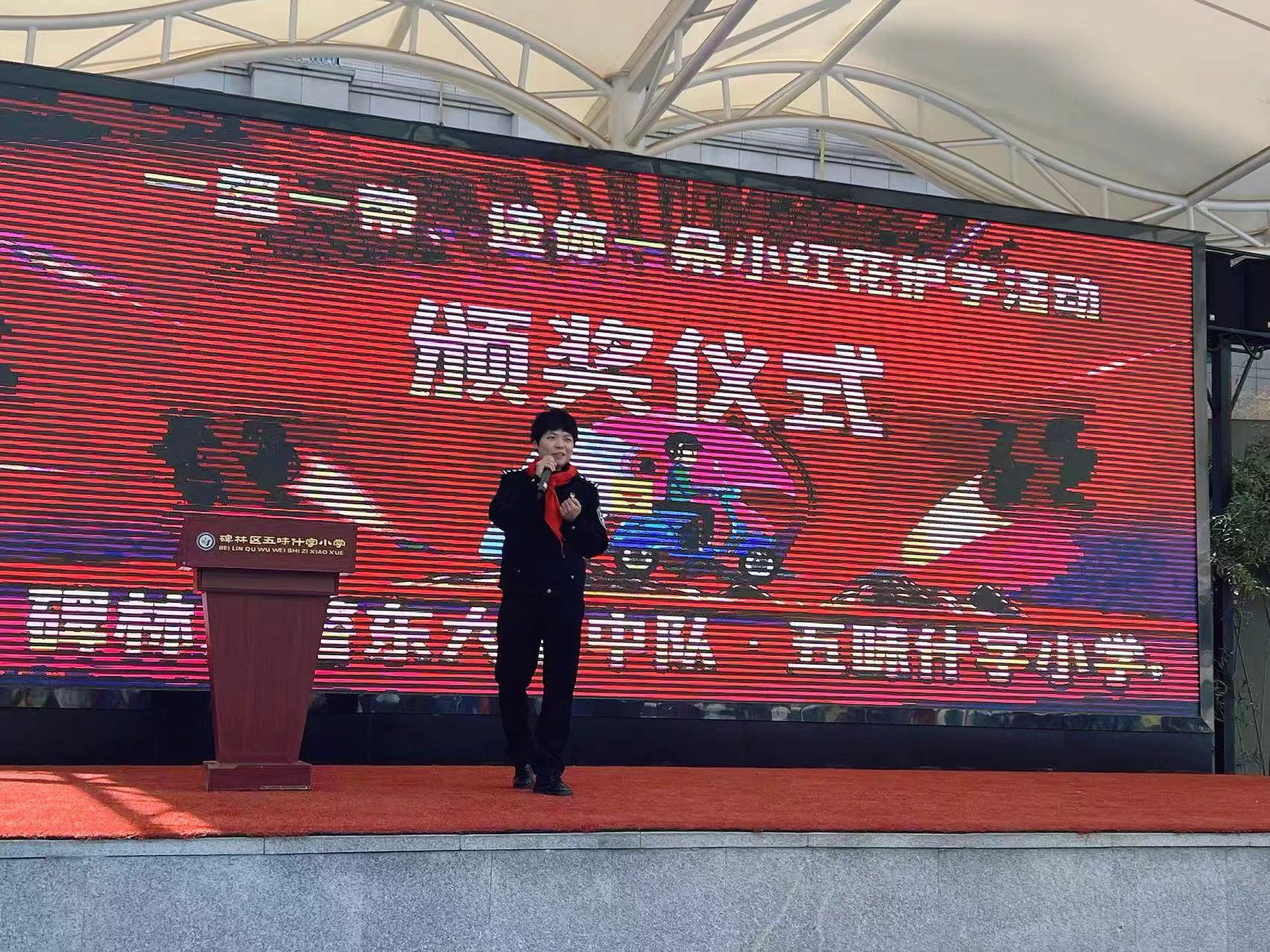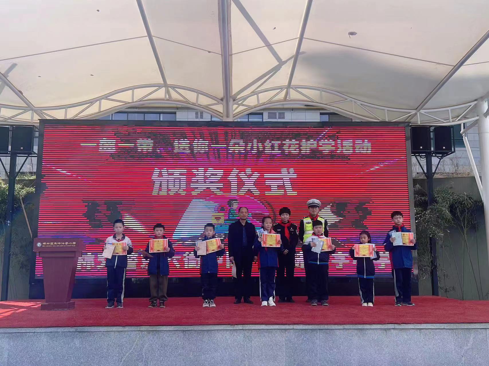 活动中,民警韩雪为学生们进行了交通安全知识讲解,并通过有奖问答环节与学生积极互动,在轻松活跃的气氛中为学生们送上了生动的交通安全知识小课堂。随后,民警们走上礼台为“小红花”护学行动中表现优异的8名学生们颁发了奖状及交通安全元素小礼品。