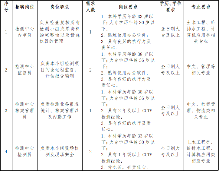 本次西安西排水环境工程有限责任公司面向社会公开招聘6人,具体岗位及任职要求详见附件。