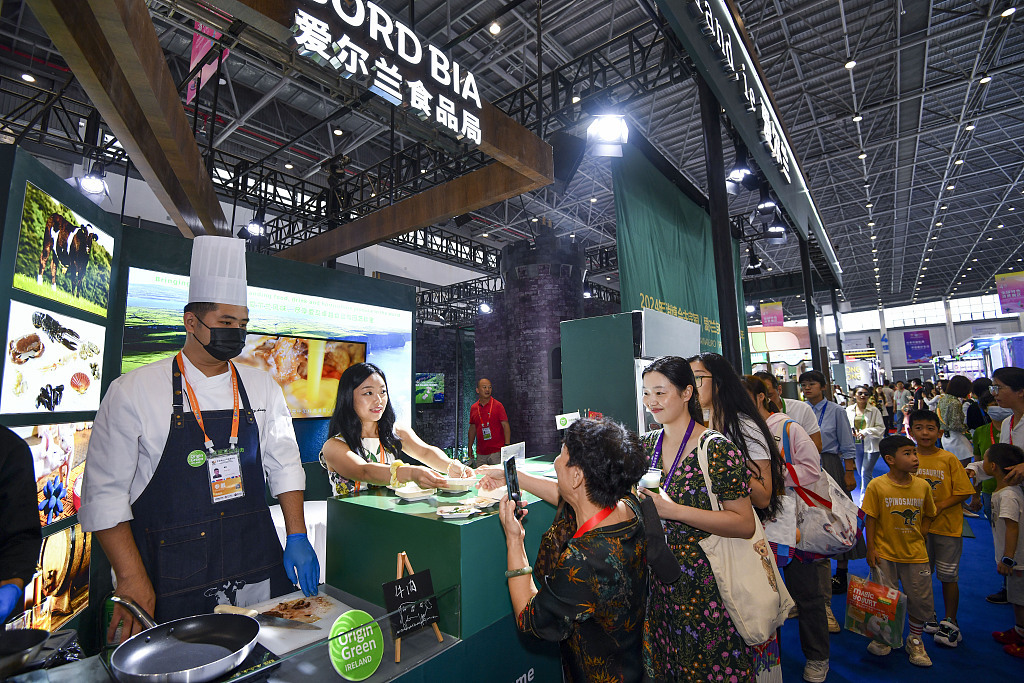 本届消博会期间,民众在爱尔兰国家馆排队品尝爱尔兰美食。