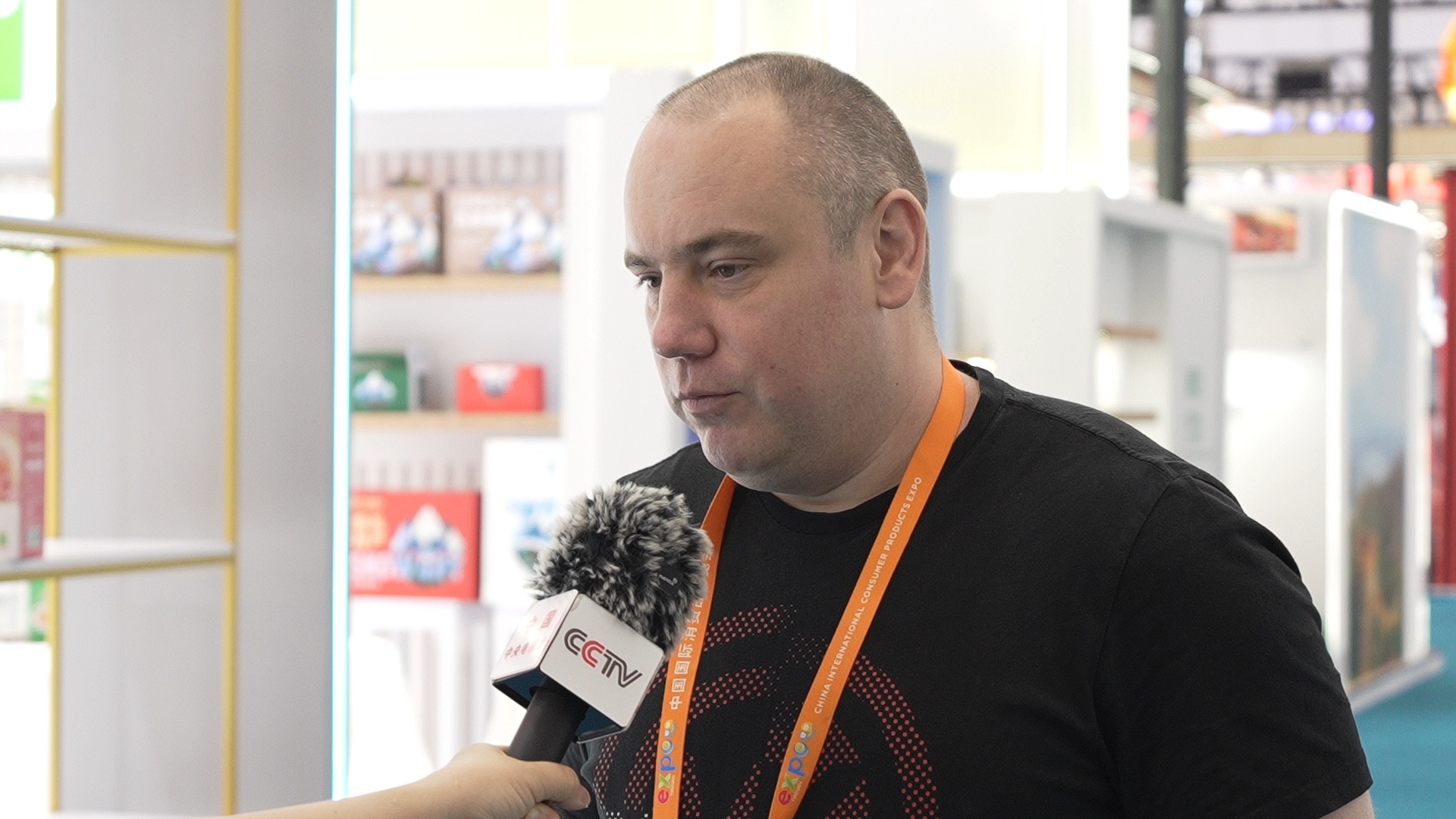 波兰参展商米哈乌·阿伯拉姆茨接受记者采访
