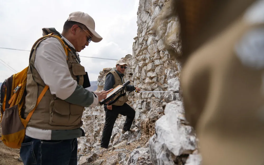 4月11日,普查人员在曲果岗塔群遗址现场开展数据采集。晋美多吉摄