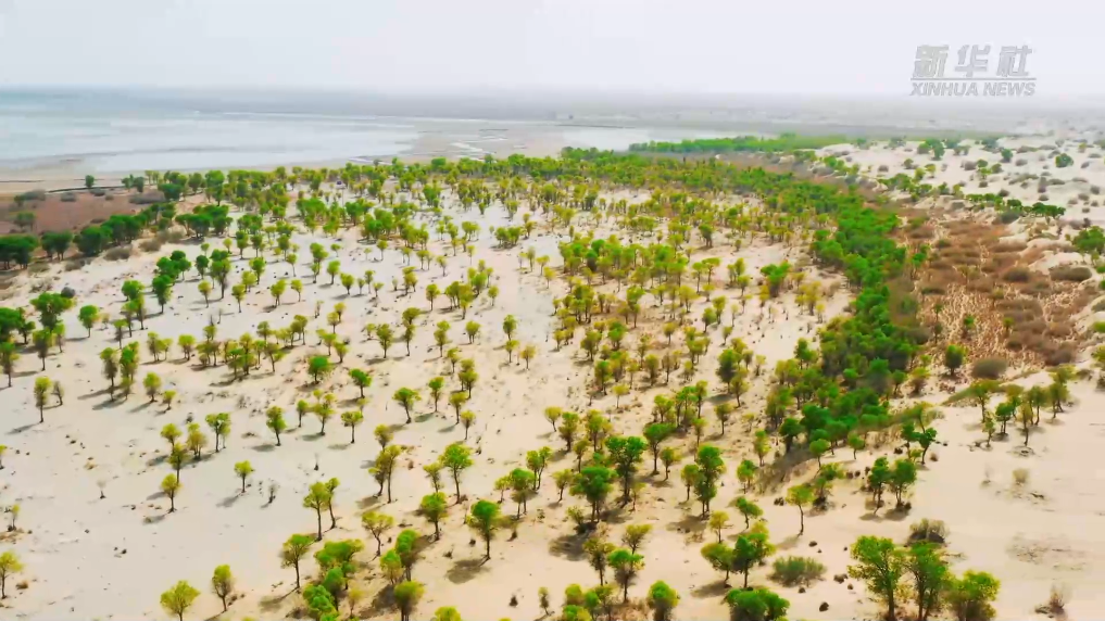 五月初期,新疆和田地区境内的胡杨林逐渐披绿,无数的新芽悄悄吐露,带着一股势不可挡的劲头,在沙漠边缘茁壮成长,让人感受到无限的力量和勃勃生机。5万余亩胡杨林枝繁叶茂,沿着玉龙喀什河一路延伸,仿佛一条绿色的丝带,飘落在塔克拉玛干沙漠中,为游客奉上了一道美丽的天然景观。