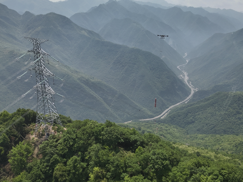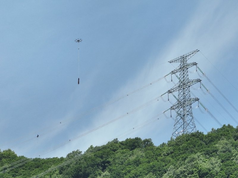 连日来,陕西送变电公司现场人员多次踏勘,选定检修物资起吊点、投放点等关键位置,认真分析作业点地理环境、气象条件、吊运线路等因素,合理规划无人机飞行航线,协同完成检修物资吊运工作,在最大化保护生态的情况下,解决了山区运输困难,提升作业效率。“有了无人机运输物资,大家再也不用带着几十斤重的工具爬山涉险了。”西安明珠电力安装工程有限公司副总经理张立说。