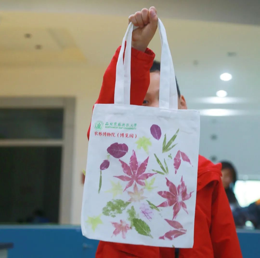 活动内容:选取色彩绚烂的叶、草,以拓印技艺将其美丽纹理及色彩留存于帆布袋上,制作独一无二的礼物。