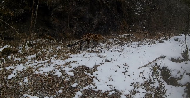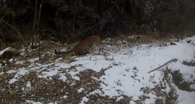 三秦都市报-三秦网讯(白玉 记者 王嘉)5月28日,记者从陕西省林业局了解到,陕西长青国家级自然保护区工作人员近日在整理数据时发现,布设于密林深处的红外相机,再次拍摄到野生金钱豹雪中巡视领地的精彩画面,其中“刨坑”宣示主权的行为被全程记录下来。