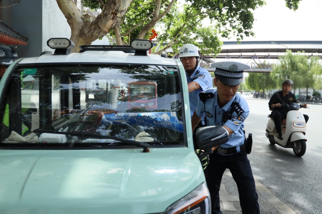 行动中,大队采取集中整治和流动巡逻相结合的勤务方式,在辖区主干道等车流量大的路段设置临时执勤卡点,对电动车未悬挂号牌、不佩戴安全头盔、违法载人等各类违法行为进行劝导、查处。并走进社区向群众“面对面”宣传。通过唠家常、讲案例、发传单等的方式,向群众讲解基本安全出行常识以及酒驾醉驾、一盔一带、超员、超速、超载、疲劳驾驶等交通违法行为带来的危害性。