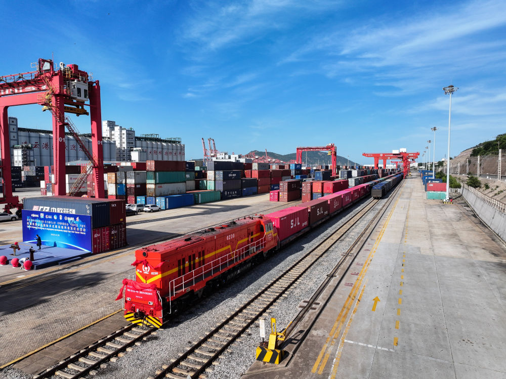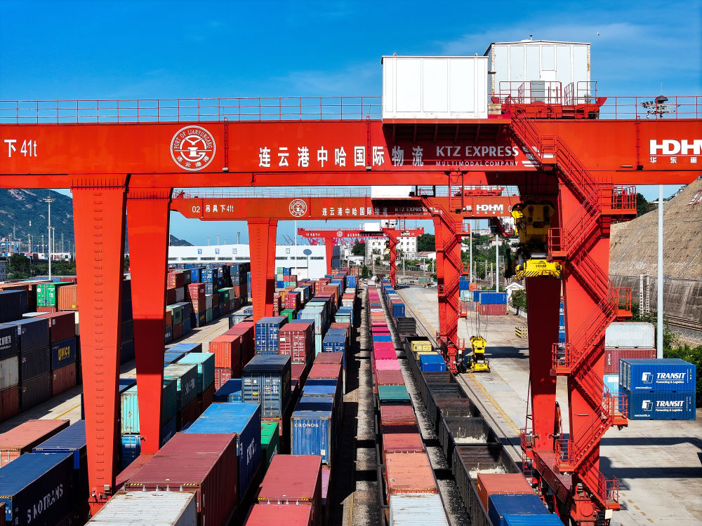 牵山连海,双向奔赴。“钢铁驼队”在连云港和中亚地区之间往返穿梭,为东西交融、贸易畅通注入源源不断的动力。